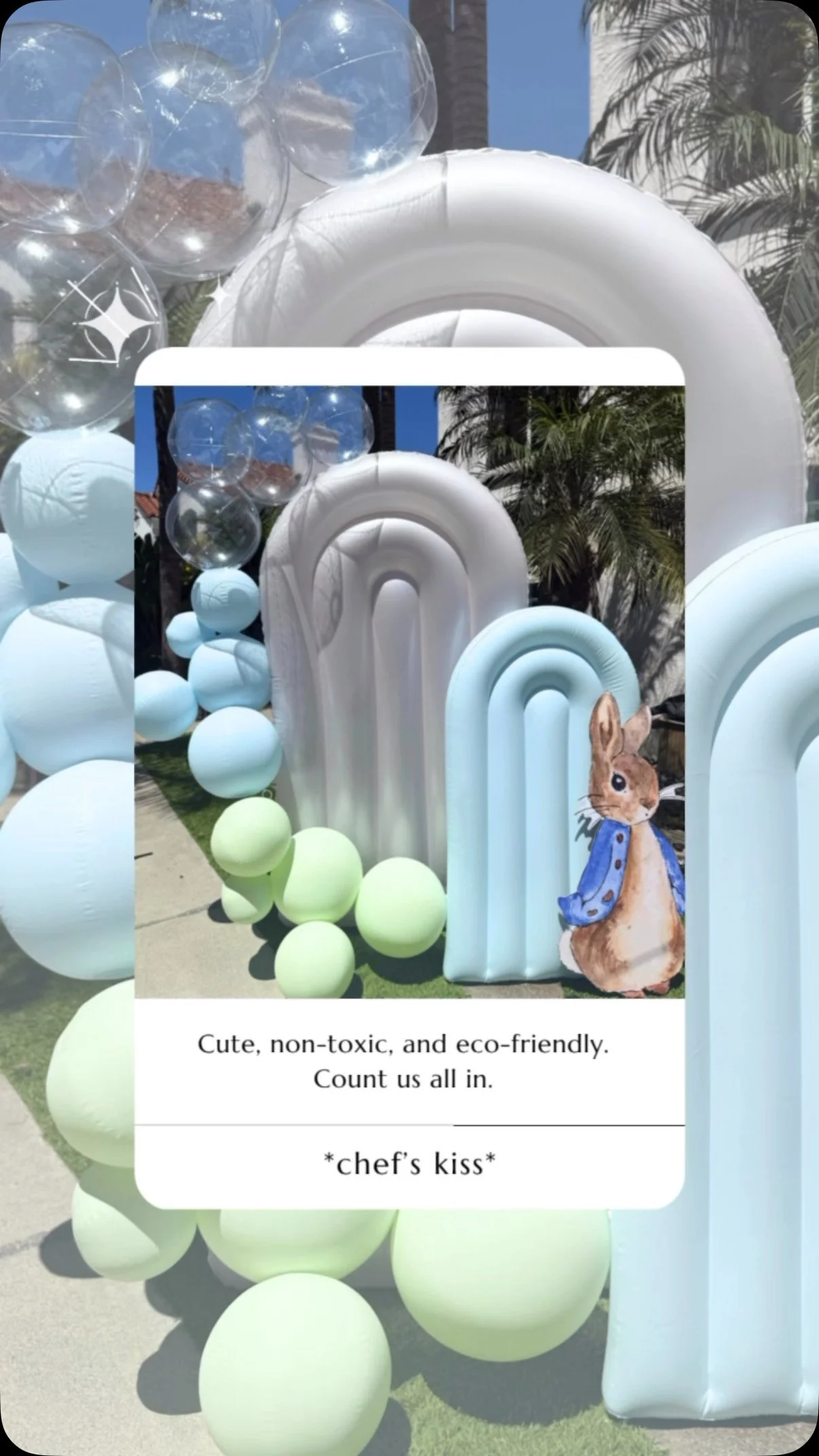 In addition to our curated portfolio of a la carte options, we offer packages for themes like “A Peter Rabbit celebration,” “backyard bash,” “baby on board,” and many, many more.